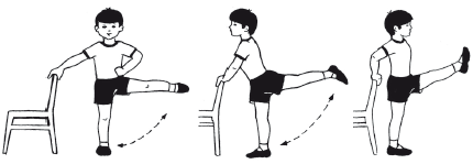 19. Стоя у опоры, маховые движения ногами вперед, назад, в стороны.