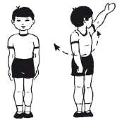 21. Повороты туловища в стороны с отведением руки в ту же сторону.