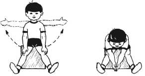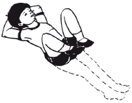 3. И.п. – то же. На выдохе сесть из положения лежа. В первое время можно помогать себе руками. На вдохе вернуться в и. п. Темп медленный и плавный. Повторить 3–4 раза.