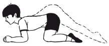 5. И.п. – коленно-локтевое. На выдохе медленно разогнуть ноги в коленных суставах, опираясь на носки ног и предплечья. На вдохе вернуться в и.п. Темп медленный. Повторить 2–4 раза.