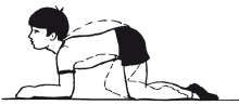 6. И.п. – то же, ноги на ширине стопы. Передвигая колени по полу, приблизить их к локтям, округляя при этом спину; затем вернуться в и.п. Темп средний.