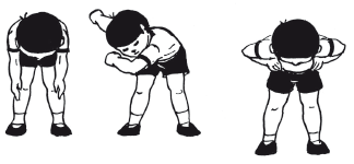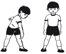 20. Исходное положение – стоя и держа за спиной гимнастическую палку (верхний конец прижат к голове, нижний – к тазу). Присесть, вернуться в исходное положение. Наклон вперед, вернитесь в исходное положение. Наклон вправо, затем влево.
