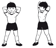 19. Исходное положение – стоя, руки за головой. С силой отвести руки в стороны и, подняв руки вверх, прогнуться. Пауза 2–4 секунды и вернуться в и.п. Дыхание произвольное.