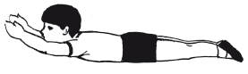 14. Сохраняя срединное положение позвоночника, отвести назад прямые руки; ноги, разогнутые в коленных суставах, приподнять.