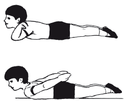 Исходное положение – лежа на животе, подбородок на тыльной поверхности кистей, положенных одна на другую.