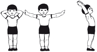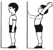 22. Исходное положение – стоя на шаг от стены. Коснувшись руками стены, прогнуться назад, подняв руки вверх, и вернуться в исходное положение. Стоя у