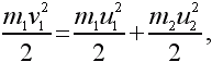 Рассмотрим, например, лобовое столкновение шаров разной массы. Уравнение импульса имеет вид (мы считаем, что шар № 2 покоился до удара)