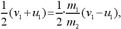 ( m 1– m 2) v 1= ( m 1+ m 2) u 1,