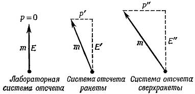 Рис. 96. 4-вектор энергии-импульса одной и той же частицы в трёх различных системах отсчёта.