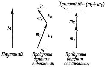 Рис. 97. Сумма масс покоя продуктов деления ядра плутония меньше, чем масса покоя исходного ядра.