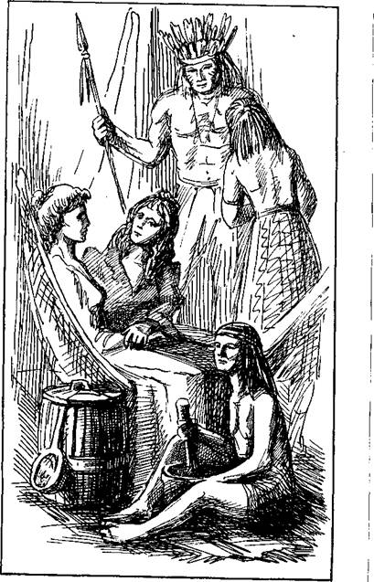 Индеец не заставил повторять приглашения. Едва в воздухе пронесся его крик, как в ту же секунду в кустах послышался шорох и молодая индианка подбежала к воину, словно испуганная лань. При виде девушки глаза вождя радостно сверкнули, но тотчас, затаив свою радость, он холодно сказал ей: