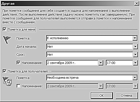 Бывает, что на письмо нужно отреагировать в какой-то точно определенный момент. Например, в письме содержится просьба «Позвоните мне, пожалуйста, во второй половине дня в четверг». В таком случае стоит установить