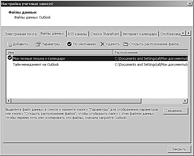 Еще один момент, который необходимо учесть при хранении почты, – в каких файлах она хранится физически. Если у вас в компании корпоративный Exchange-сервер, почта хранится на нем. В противном случае ваша почта находится в файле outlook.pst, находящемся в файловой системе компьютера.