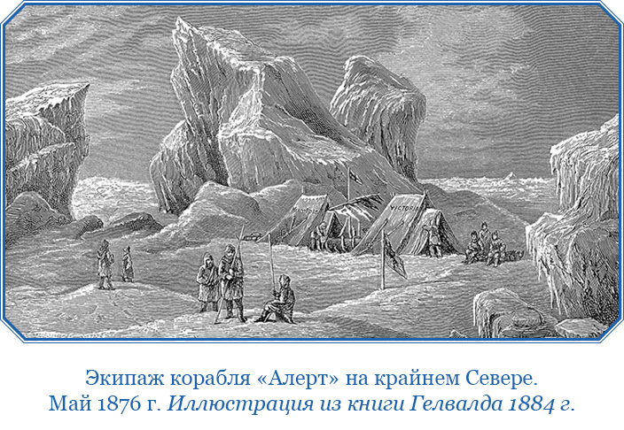 Сегодня, пока готовился завтрак, я вышел из палатки и сделал меридиональное наблюдение; которое, к нашей радости, показало, что мы находимся под 82°52' северной широты».