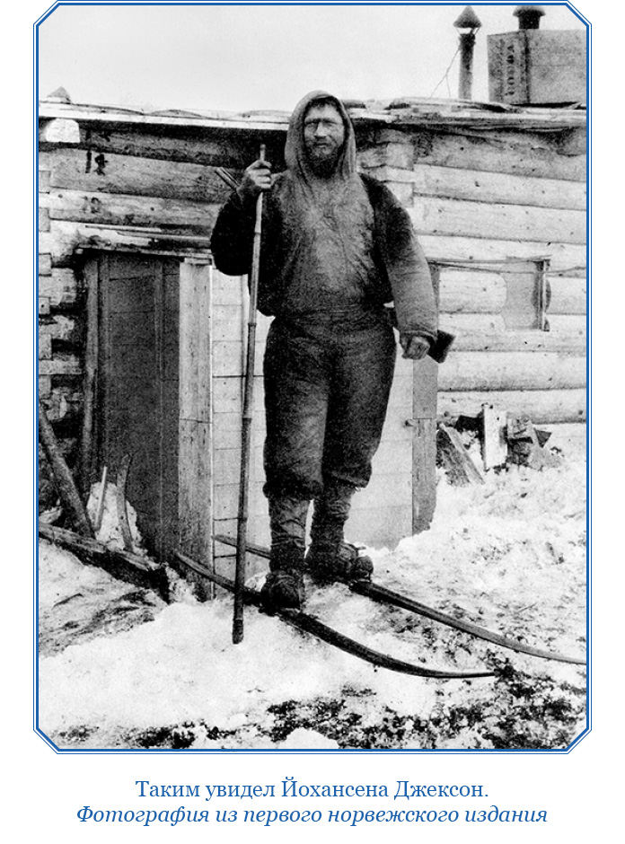 Когда все собрались, Джексон сказал, что я достиг 86°15' северной широты, и из семи здоровых глоток вырвалось в мою честь троекратное английское «ура», так, что эхо прокатилось над торосами. Джексон тотчас послал товарищей взять нарты и отправиться к Иохансену, а мы пошли к дому экспедиции, который, приглядевшись, я стал различать на берегу.
