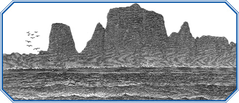 Земля, вдоль которой мы шли к северу, была низменная, отчасти похожая на ту, на которой я побывал накануне. В глубине, на некотором расстоянии от берега, виднелись скалы или горные хребты небольшой высоты. Некоторые из них, казалось, состояли из горизонтально залегающих осадочных пород.