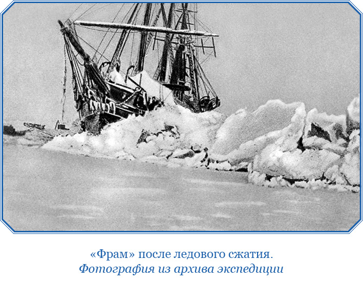 После обеда сидели, разговаривая о том, о сем, когда вдруг раздался оглушительный грохот и «Фрам» весь задрожал. Это было первое сжатие льдов. Все выскочили на палубу посмотреть. «Фрам», как я и ожидал, держался превосходно. Лед наступал непрерывно, но уходил вниз, под киль судна, а оно медленно выжималось кверху.