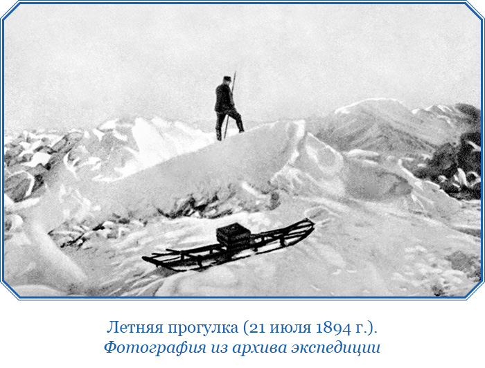 «Среда, 18 июля. До полудня ходил с Блессингом на прогулку, чтобы взять пробы бурого снега и льда и выловить из воды водоросли и диатомеи. Верхняя поверхность льдин почти повсюду грязно-бурого цвета; во всяком случае, бурый лед преобладает, тогда как чисто белые льдины, без следов грязно-бурого оттенка, редки.