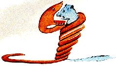 Lorsque j'avais six ans j'ai vu, une fois, une magnifique image, dans un livre sur la Foret Vierge qui s'appelait "Histoires Vecues". Ca representait un serpent boa qui avalait un fauve. Voila la copie du dessin.