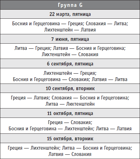 В группе Gна фоне соперничества Греции и Словакии есть шанс что-то откусить у соперников, у наших бывших соседей по общесоюзной «коммуналке» – у Литвы и Латвии. Уже стало немного подзабываться, но именно латвийская сборная была первой из стран бывшего СССР (если не считать Россию), кто отобрался в финальную часть одного из чемпионатов. Вовсе не Украина, традиционный номер два постсоветского пространства в футболе, а именно Латвия. Впрочем, того, прежнего уровня у латвийцев давно не видно.