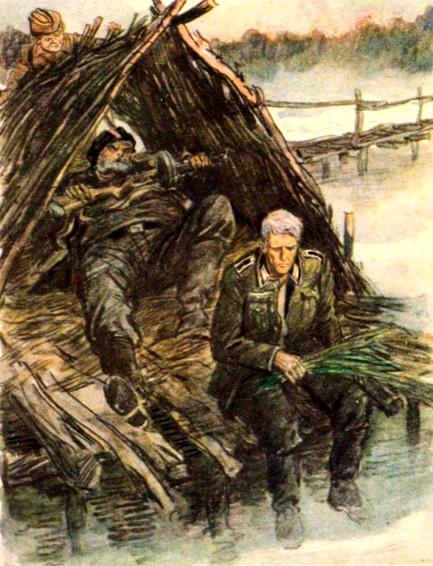 Власыч, уложив немца в своем шалаше, сел с автоматом его караулить.