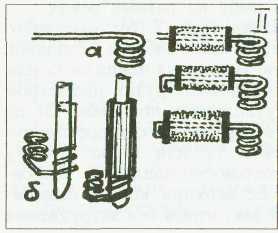 Поплавок будет обладать переменной грузоподъемностью, если к нему изготовить дополнительные секции, которые при необходимости нанизывают на выступающий из поплавка стерженек-антенну. А чтобы они не соскакивали, на антенну надевают колечко из ниппельной резинки. Наконец, изготавливают 3–4 цельных, разных по величине поплавка с пропускными колечками, позволяющими менять их. Конструкции поплавков показаны на рисунке 2.18.