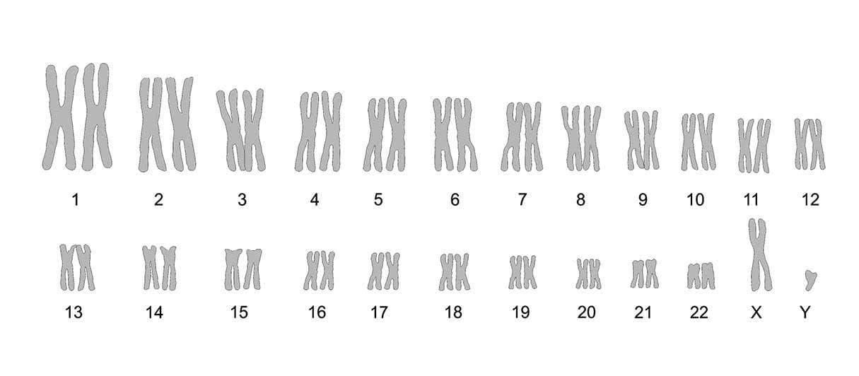 Нормальный хромосомный набор (кариотип) человека представлен 46 хромосомами. Это 22 пары аутосом и одна пара половых хромосом – XY [6] в мужском кариотипе и XX – в женском. Посмотрите на рисунок, и вы увидите, что половые хромосомы получили обозначение по сходству с соответствующими буквами алфавита.