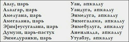 «В месопотамской литературе встречаются спорадические ссылки на семь мудрецов (апкаллу), живших в эпоху до Потопа и считавшихся родоначальниками всех наук и искусств, ассоциируемых с цивилизацией».