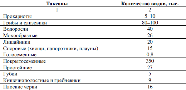 В настоящее время на земле обитает около трех миллионов видов различных живых существ (таблица 3), количество же экологических ниш неизмеримо меньше.