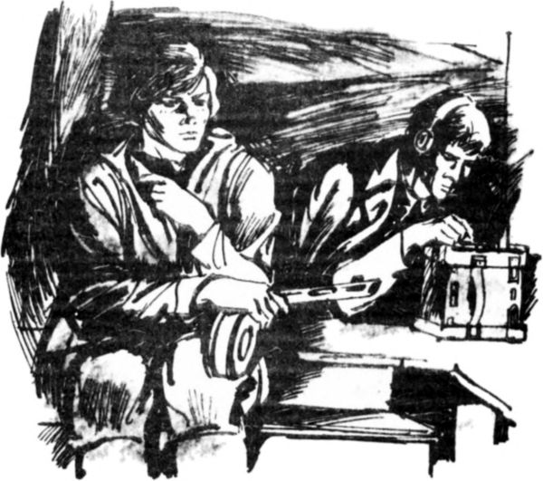 …Чердачное перекрытие, пахнет солью, мышами, прелым зерном. В середине, под сушильной трубой, лежит молоденький солдат-радист, прикрыв ватником рацию. В углу, сдавленном железной крышей, вытянулся Иван Иванович Суполкин. Он всматривается в маленькие светлячки сигнализации, которые беспорядочно разбросаны меж путями. За станцией в мглистой дымке чувствуется затемненный городок, недалеко силуэт водокачки.