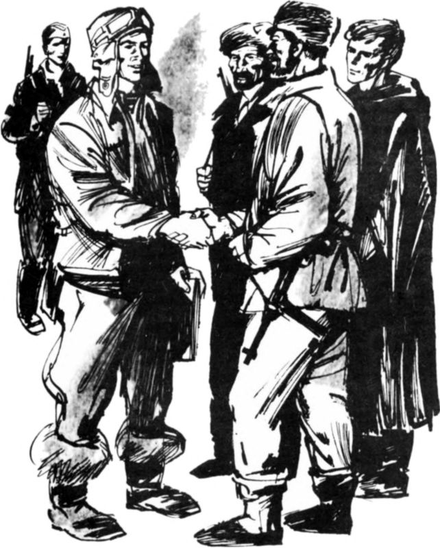 на устах. Посматривали на небо, но оно ночами было закрыто плотными облаками — ни один самолет не мог нас разыскать.Но однажды утром над нашим лесом появился самолет-истребитель. Сначала почти никто не обратил на него внимания — мало ли летало в то время разных самолетов, только они были не наши; но — странно! — летчик упорно кружится над одним районом, то взвывая ввысь, то прижимая машину к верхушкам высоких сосен. Следя за самолетом, мы разглядели на его крыльях звезды.