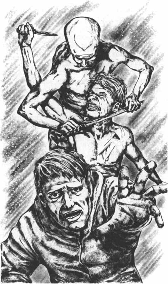 миг нож Нэда пронзил его грудь.Остальные попятились, обескураженные полученным отпором, обнажая мечи и призывая на помощь. Из нор за их спинами стали появляться другие Не-такие. Они попытались окружить Нэда и Шерл. Раздался голос Трионта, требующего объяснений по поводу возникшего переполоха.