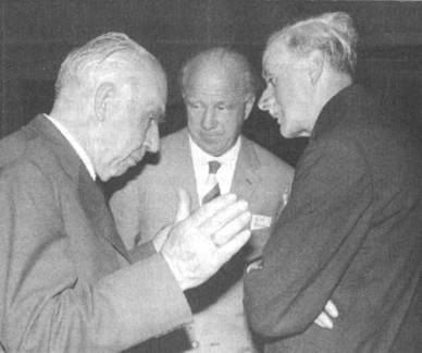 На фотографии изображены Бор, Гейзенберг и Дирак (слева направо)- участники встречи, прошедшей в 1962 году.