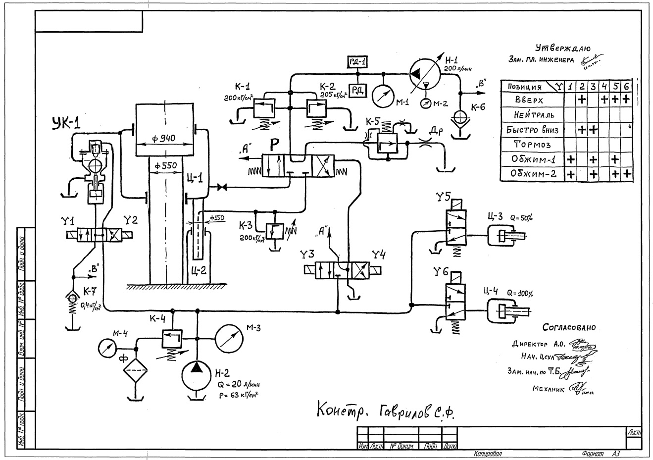 Ниже показана разработанная автором и утвержденная руководством гидросхема.