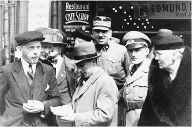 Нацистская служба внутренней разведки в действии. Человек в центре, в шляпе, член гестапо, органа государственной безопасности