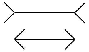 Человеческому глазу кажется, что верхняя линия длиннее, чем нижняя линия, тогда как на самом деле эти две линии имеют одинаковую длину. Большинство людей используют этот хорошо известный пример как доказательство того, что физические чувства не заслуживают доверия, но это не совсем так. Ваши глаза не говорят вам, что одна линия длиннее другой, они просто служат передающим устройством для световых волн. Это ваш ум преобразовывает эти световые волны в ментальный образ и называет части этого образа линиями, создаёт идею длины и рассуждает, что одна линия выглядит длиннее, чем другая. Ваши глаза не размышляют о линиях и, таким образом, не имеют понятия о том, что одна линия может быть длиннее другой. Именно ваш ум создаёт этот ментальный образ и накладывает его на световые волны, воспринимаемые глазами. Дело в том, что в действительности именно ум не заслуживает доверия, а не чувства. Ваши чувства просто делают то, что им предназначено делать, а именно обнаруживают энергетические волны, из которых стоит материальная вселенная. Чувства не рассуждают о том, есть ли что-нибудь за пределами того, что они фиксируют, – только ум может делать это. Ум не заслуживает доверия именно из-за его склонности накладывать ментальный образ на ту картину, которую зафиксировали чувства. Если такие ментальные образы не соответствуют реальности, ум будет основывать своё видение реальности, своё видение мира на ряде иллюзий.