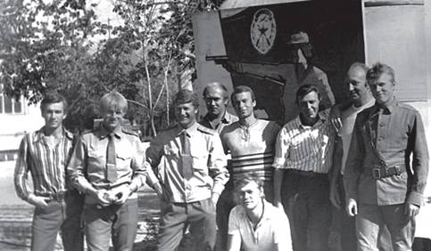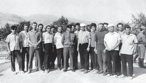 Войсковые испытания 1981 г. «Тайфун» (район озера Иссык-Куль). Стоят: третий слева — В.Б. Домнин, пятый — А.Р. Дмитриев, шестой — А.Г. Богомолкин, седьмой — Ю.Н. Нейгебауэр