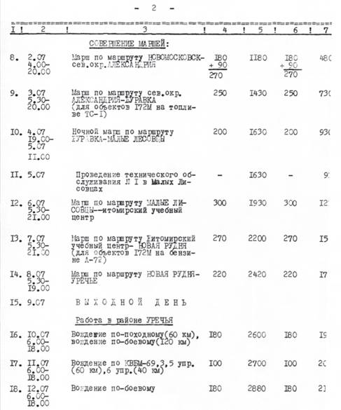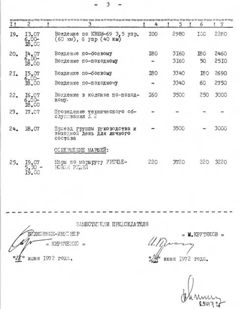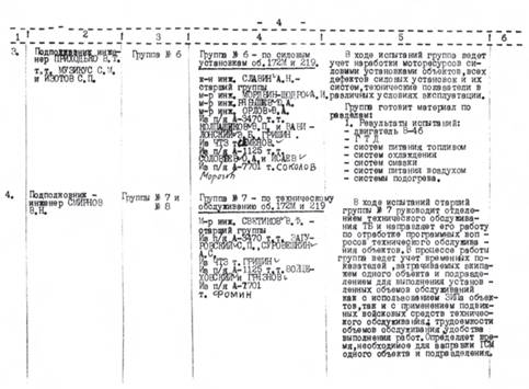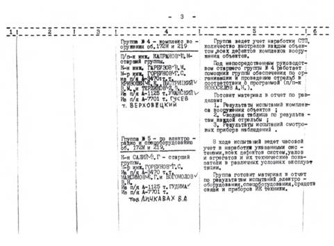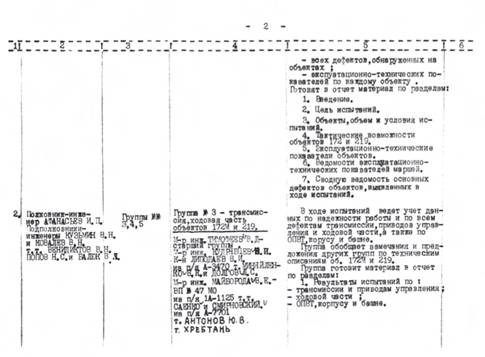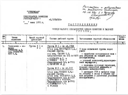 Распределение и функциональные обязанности членов рабочих групп на испытаниях танков 1972 года. Из архива П.И. Кириченко
