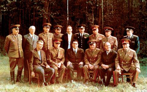Сидят (слева направо): Н.С. Попов, генерал-лейтенант Г.Д. Городецкий, П.П. Исаков, Н.А. Шомин, В.Н. Венедиктов, генерал-лейтенант Салтыков. Стоят: третий слева — заместитель председателя НТК ГБТУ полковник В.С. Бочков, пятый слева — инструктор оборонного отдела ЦК КПСС Н.С. Казаринов