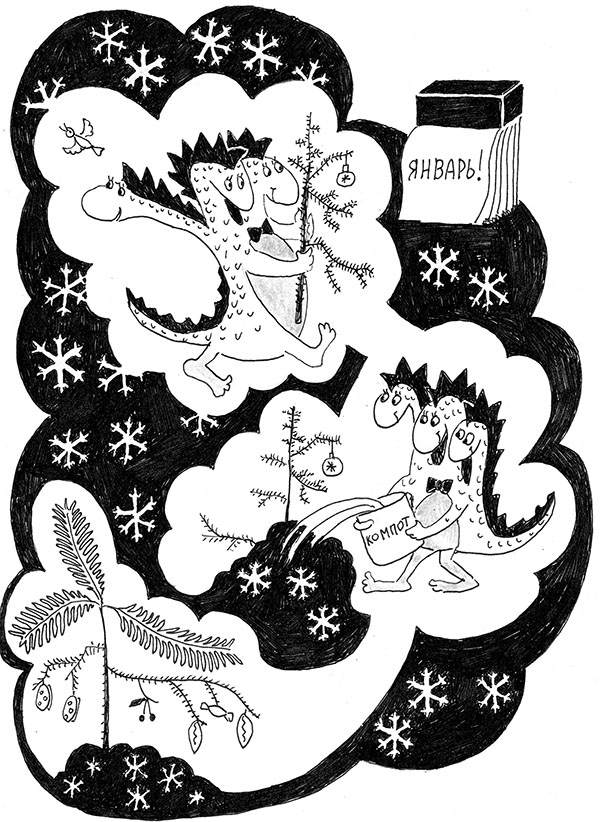 Однажды в январе пошёл трёхголовый дракон Потапов выбрасывать новогоднюю ёлку. Потому что был уже не январь, а почти февраль. Запихнул Потапов ёлку в мусорный