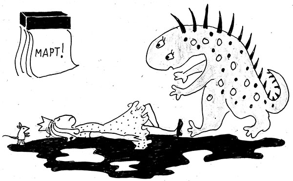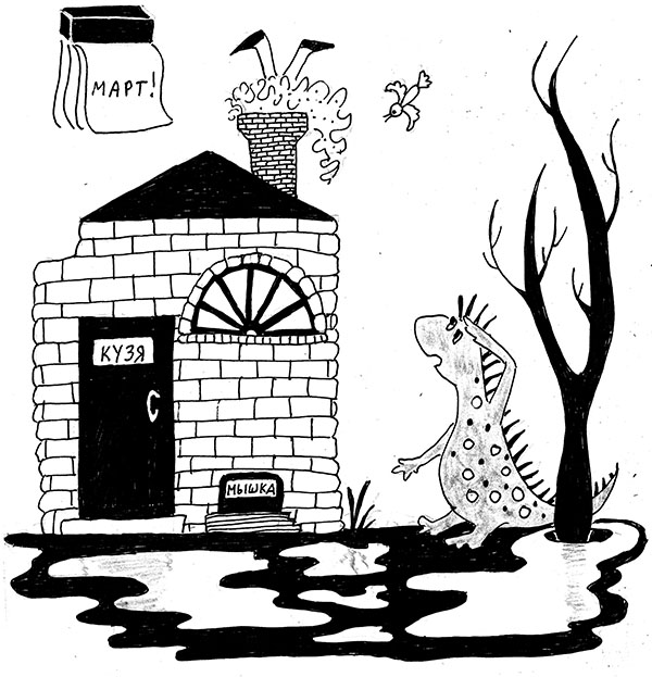 в марте наступила весна. По крайней мере она пыталась это сделать. Не её вина, что по-ка ничего не вышло. Итак, в начале марта после сильной бури, традиционной для уральской весны, дракон Кузя прибежал к трёхголовому дракону Потапову и сказал:– У меня в дымоходе завелось привидение. И воет, аж зубы заболели.