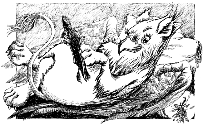 Эльда спрыгнула со своей эстрады, но в последний момент вспомнила, что весь пол выложен магическими узорами. «Вот как хорошо быть грифоном!» – подумала она и расправила крылья. Юная грифонша полетела к двери. Со сна она не заметила, что ветер от ее крыльев исказил очертания некоторых узоров. Дверь тем временем содрогалась от ударов.