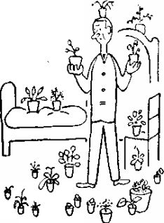 Однако через полчаса он неожиданно вскакивает из этого горизонтального положения, загоревшись новой мыслью. Горшки! Ведь можно выращивать цветы в горшках! Перед ним тотчас возникают заросли пальм и латаний, драцен и традесканций, аспарагусов, кливий, аспидистр, мимоз и бегоний — во всей их тропической красе. И между ними, конечно, расцветет какая-нибудь скороспелая примула, какой-нибудь гиацинт или цикламен. В прихожей устроим экваториальные джунгли, по лестнице будут сбегать лианы, а на окнах поставим цветы, которые будут цвести как сумасшедшие. Тут садовод озирается по сторонам: он уже не видит комнаты, в которой живет; вокруг него райский девственный лес, который он создаст. И он бежит в цветоводство — здесь же, за углом, — чтобы принести оттуда охапку растительных драгоценностей.