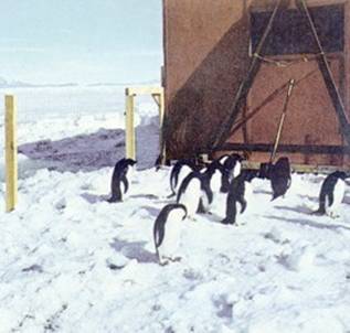 Пингвины не подходят близко к станции Мак-Мердо. Поэтому некоторые из них были пойманы и заключены за решётку для наблюдения и изучения.
