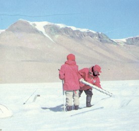 С помощью термобура, установленного на вездеходе, мы выясняли, тает или намерзает лёд под шельфовыми ледниками. Бурение у подножия вулкана Эребус.