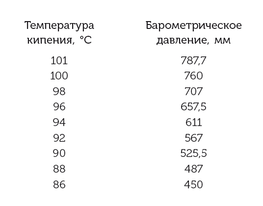 И действительно, наблюдаются следующие температуры кипения чистой воды при различных давлениях атмосферы:
