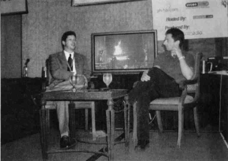 Эксперт по технологиям поиска Дэнни Салливан и Сергей Брин ведут задушевную беседу на конференции «Стратегии поисковых машин»,