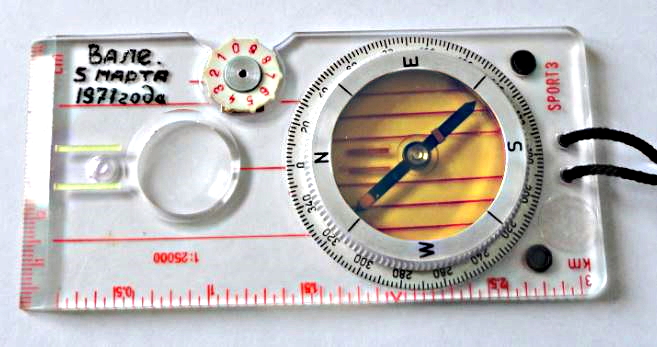 Определяем угол между линией на магнитный север и линией маршрута ( измеряем по часовой стрелке ) это будет азимутом на точку выхода. Как видим – компас и карта главные инструменты при ориентировании. Компас лучше иметь жидкостный и в дальнем походе нужно иметь минимум два компаса. Один у руководителя и один у замыкающего. На компасе конец стрелки и некоторые деления окрашены светящейся краской. Если компас не военный, то светящееся краска в темноте будет светиться всего несколько минут. Поэтому не стоит надеяться, что удастся с компасом ориентироваться в темноте.