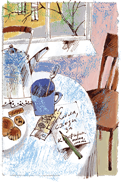 Когда Коля проснулся, родителей уже не было. На столе лежала записка с просьбой сходить за кефиром и рубль.