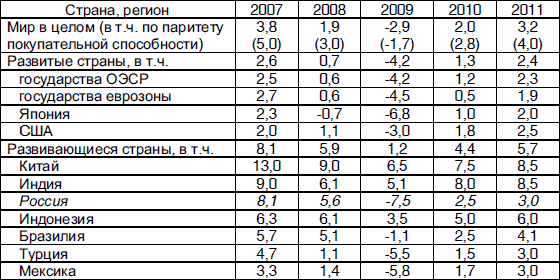 В-третьих, необходимо специально отметить глубину кризиса. В различных странах произошло падение фондовых рынков в 1,5–5,0 раз, цены на нефть и газ уменьшились втрое. Годовая рецессия в большинстве стран сопровождается сокращением промышленного производства на (10–15)% и более, резким увеличением безработицы в ряде государств и др.